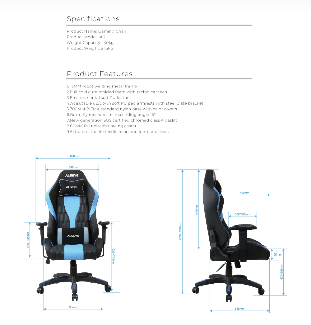 · Adjsutable up/down soft PU pad armrests with steel plate bracket