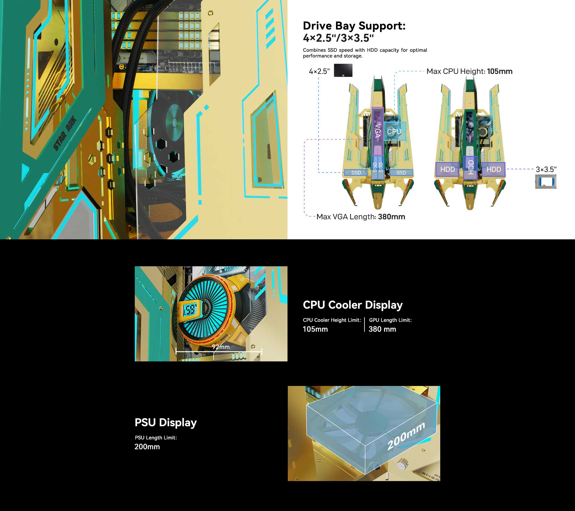 | Driver Bays | 4×2.5/3×3.5" | Liquid Cooler Compatibility | Rear:360mm*1 | |